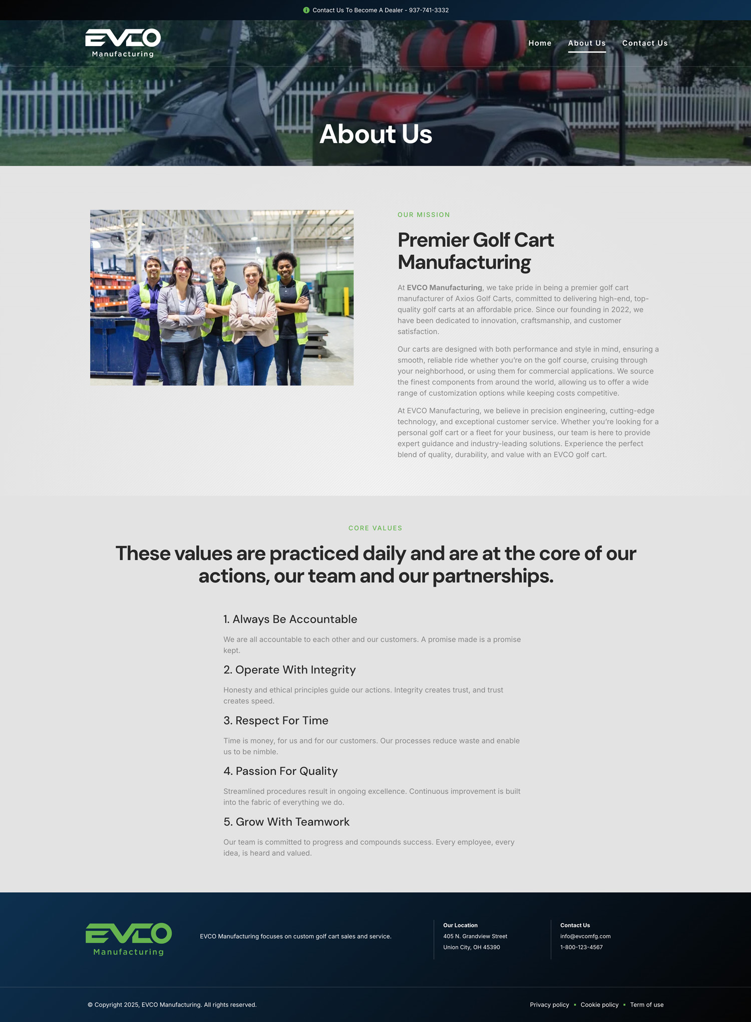 EVCO Manufacturing is a small custom cart builder in southern Ohio. They requested a simple website in order to setup an online presence.